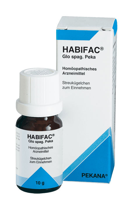 Vorsichtsmaßnahmen und Warnhinweise: Da keine ausreichend dokumentierten Erfahrungen zur Anwendung in der Schwangerschaft und Stillzeit vorliegen, sollte das Arzneimittel nur nach Rücksprache mit dem Arzt angewendet werden. Die Anwendung bei Kindern und Jugendlichen unter 18 Jahren erfolgt nur nach Rücksprache mit dem homöopathisch erfahrenen Therapeuten. Dieses Arzneimittel enthält Sucrose. Bitte nehmen Sie HABIFAC® Glo spag. Peka erst